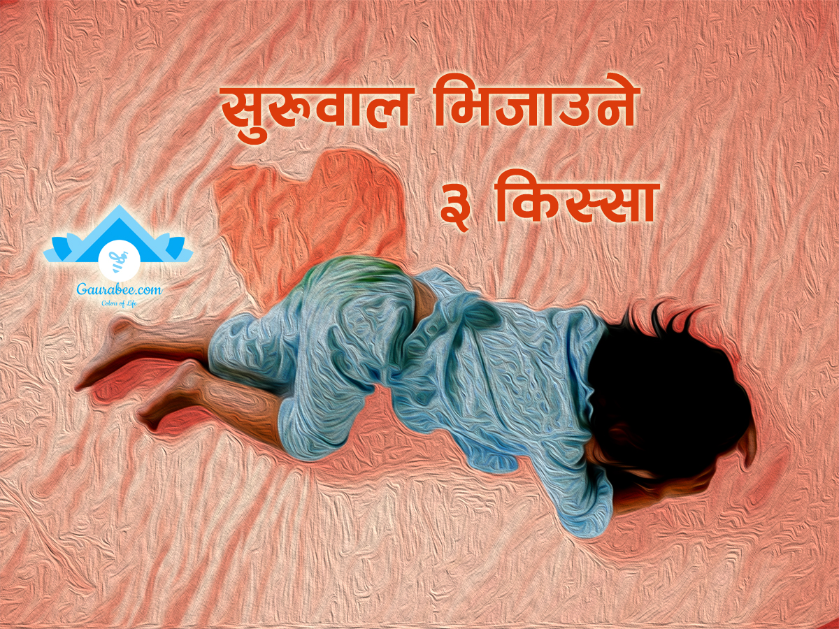 मेरो बाबु ४ वर्ष लागिसक्यो । उसको २ वर्षकी बहिनीले पिसाब लाग्यो भने संकेत दिन थालिसकिन् तर ऊ भने अझैसम्म पनि सुरुवाल भिजाउन छाडेको छैन । यसै प्रसंगमा केही रमाइला किस्साहरू छन् । ती मध्ये ३ किस्साहरू यहाँ प्रस्तुत गरिएको छ ।